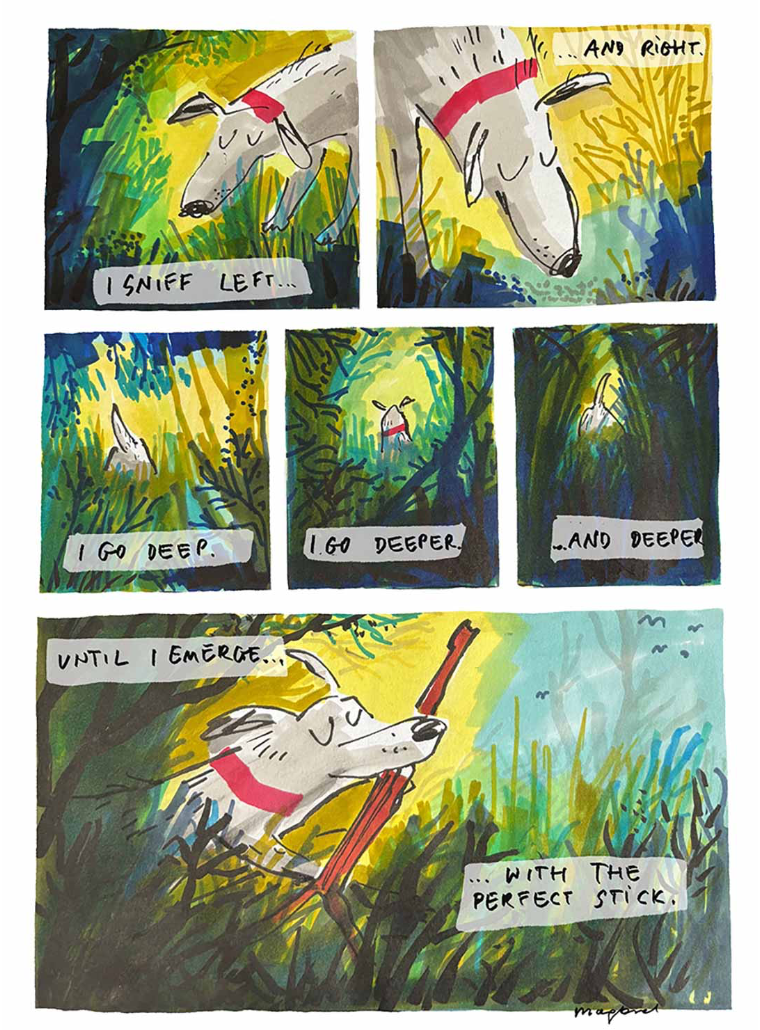 Then there was Warsaw and London, where, after the birth of my two daughters I discovered the enchanted world of picture books and found my dream job. I doodle every day, officially now, and hope to see my favourite character, Sven the Moose, in a picture book one day. In my free time, I walk my dog Diego, or rollerblade around the area. It's on the move that I come up with the best ideas.