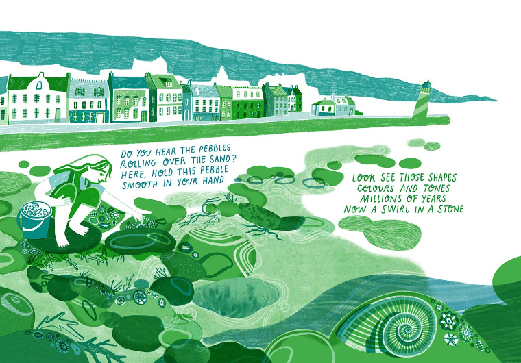 I am also a keen printmaker. I enjoy switching on my riso brain, thinking in black and white layers. I’ve found this has influenced all my image creation and helped develop my style of rich colours, very textural with lots of fine details. I often find inspiration from my drawing trips to the Scottish coast. I like to escape the city and find weather beaten rural settings to paint in my sketchbook.